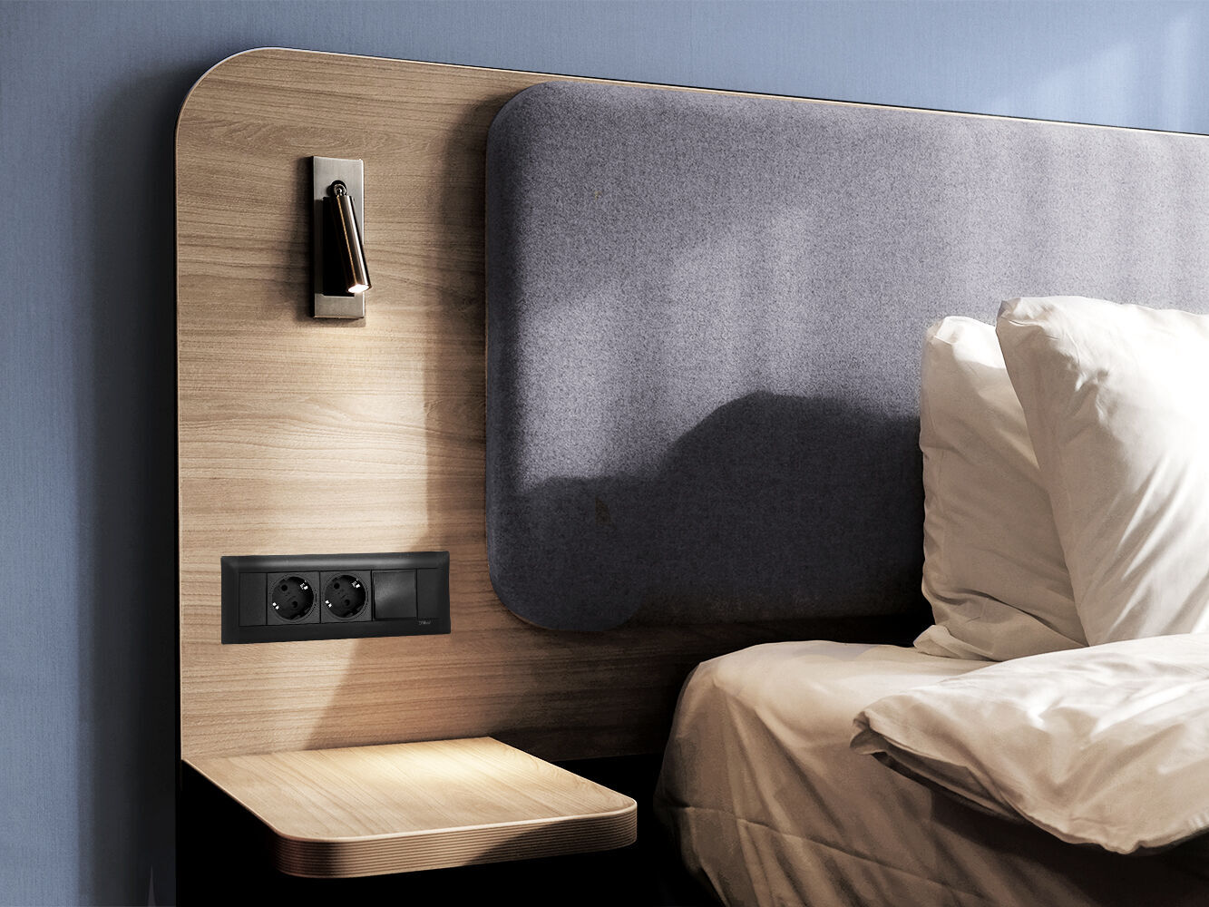 The room is your guests’ personal retreat. This is where they unwind, recharge, and feel completely at home. We design this space so that comfort and functionality come together naturally. With solutions such as FrameDock, power outlets and switches are integrated exactly where they are needed—by the bedside as well as in the workspace. Technology remains discreet in the background, elegantly built into the furniture, allowing guests to focus fully on relaxation or concentrated work.