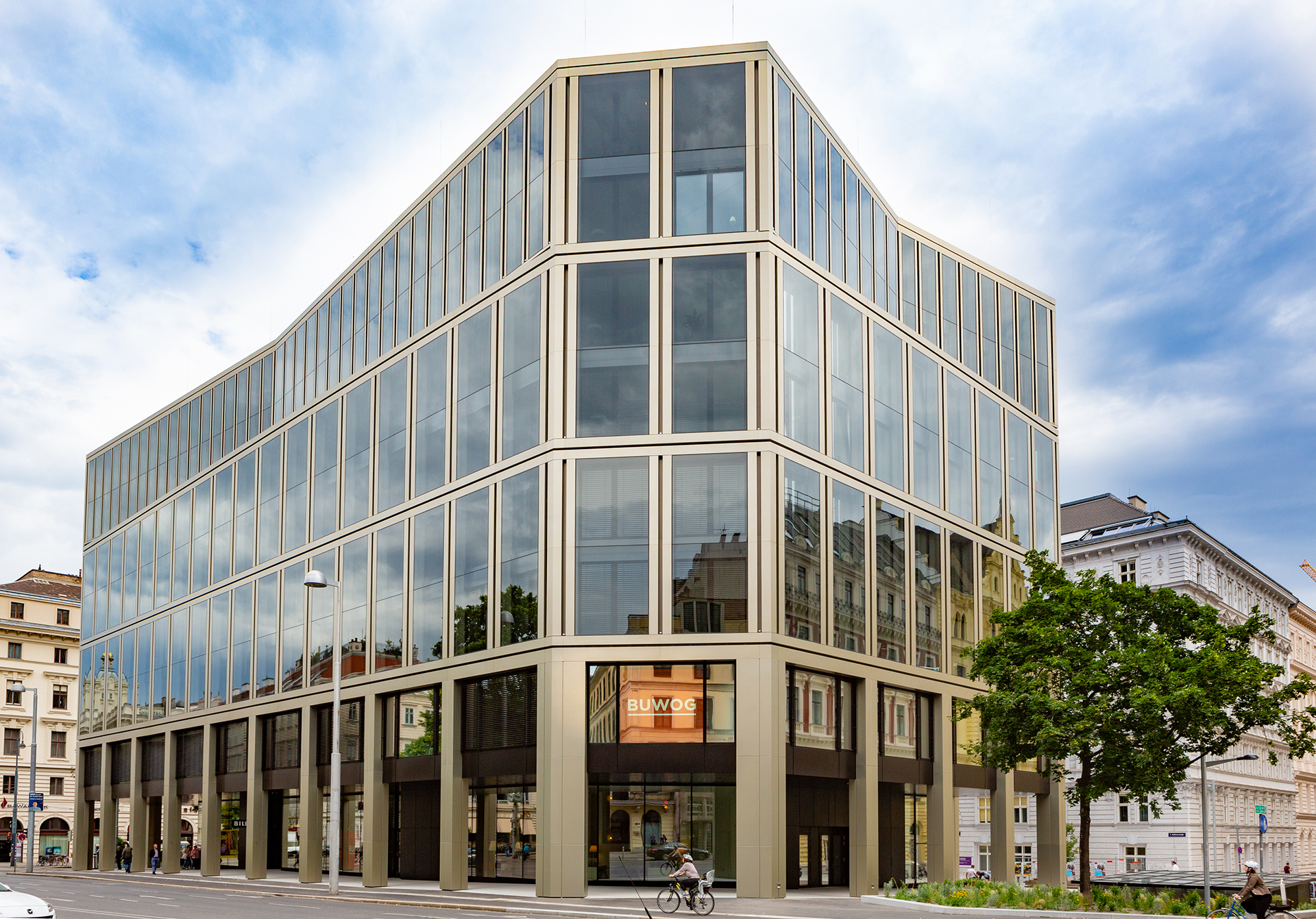 Many Viennese people still recall the old glass palace on Rathausstrasse. Not a particularly attractive, but striking reinforced concrete construction from the 1980s. With a tinted glass facade and clad in pink granite, it was home to the city’s data centre until 2013. After standing vacant for many years, the building was demolished in 2017 because converting it was no longer viable. However, not everything was simply disposed of. Stadler Prenn Architekten, who were responsible for the new build, used 90 per cent of the recyclable materials and components again. In other words, the project focused on sustainability. What’s more, the local authority specified that the architecture of the new office headquarters was to blend in with the historical environment and have a contemporary flair as well.