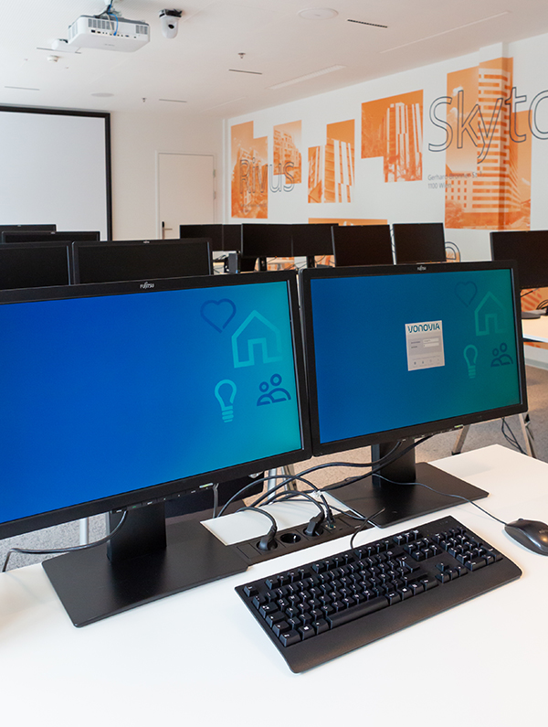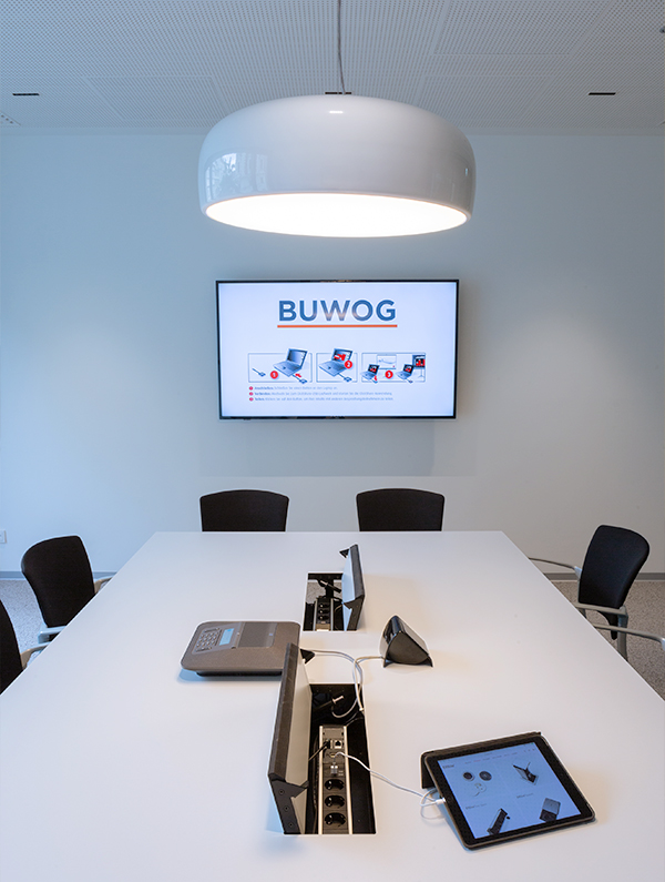 Budding industry experts are instructed in the building’s training centre. Here, BUWOG is going digital and providing the ideal infrastructure thanks to EVOline’s stylish in-built FrameDock solutions. Fitted to the work surfaces, it provides a wide range of socket and data modules close to hand and therefore the whole range of the digital real estate world.