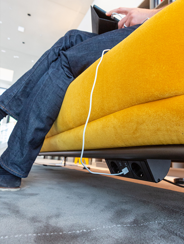 The new glass palace is divided into various areas for the company restaurant, to conference and training rooms all the way to the visitor centre. Interlinking all these was a challenge because power, data and multimedia connections were required for employees and guests everywhere. As a result, customers can look at their mobile devices in the lounge to make waiting times shorter or advisors can quickly connect their laptops to projectors during meetings. In order to find a uniform solution for the wide array of usage requirements, the project team of interior designers picked Schulte Elektrotechnik’s flexible power modules.