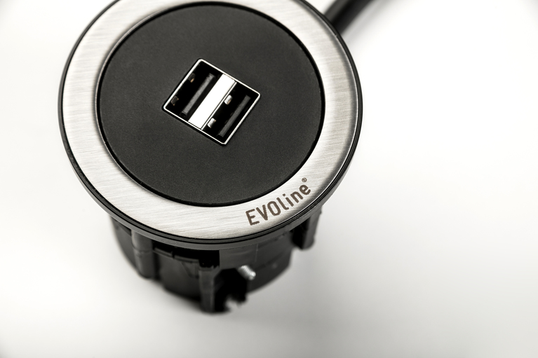 Neben den variablen Einsätzen bietet EVOline auch den individuell wählbaren Drehdeckel an. Ob am Arbeitsplatz, im Konferenzraum, im Loungebereich oder in der Teeküche, der One sorgt für einen schnellen und sicheren Zugang zu Strom oder Daten– und das auf eine sehr platzsparende und dezente Weise.